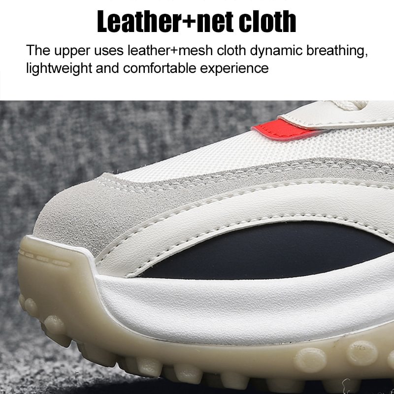 【Material】High quality synthesize breathable mesh textile, anti-collision front leather, elastic textile socks ankle, springy cushioning soft platform sole.