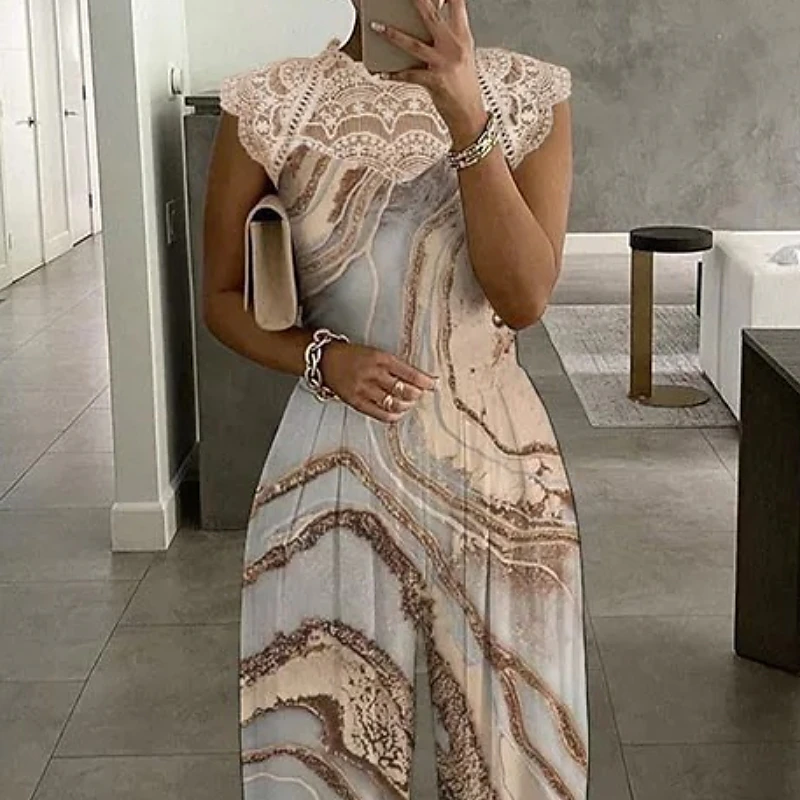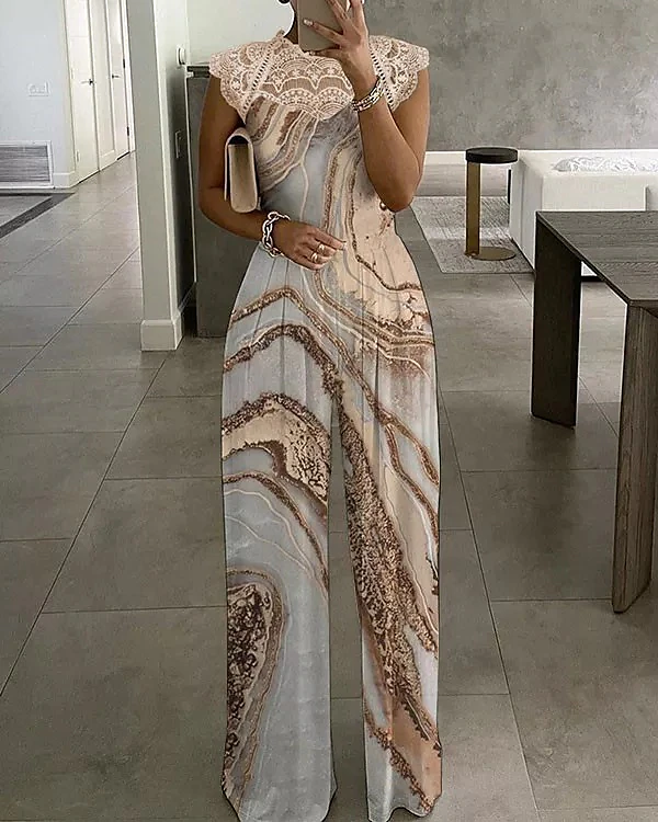Women's Lace Print Crew Neck Elegant Daily Jumpsuit