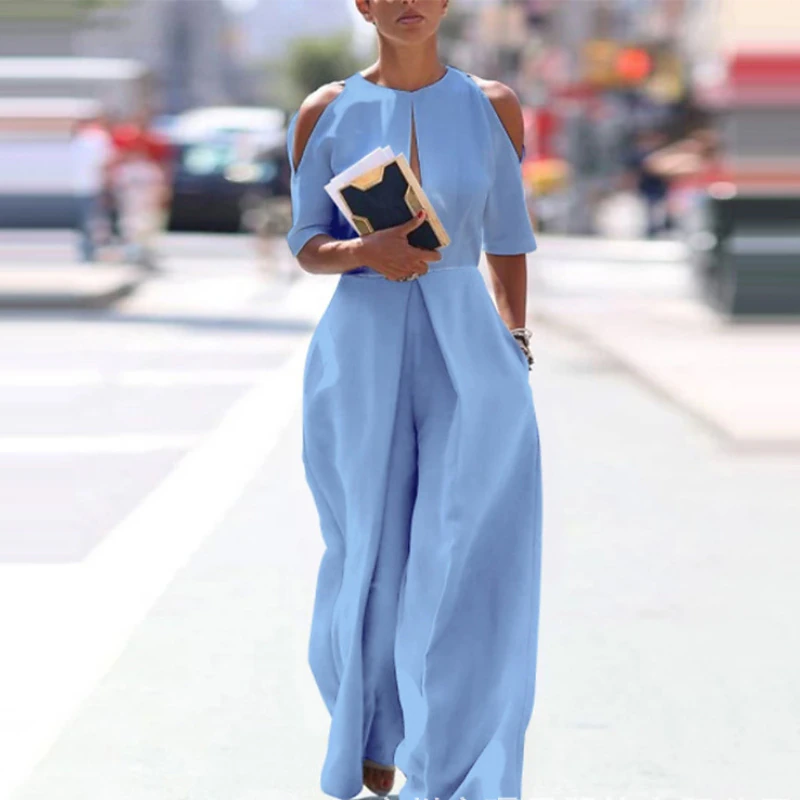 Women's Pocket Solid Color Crew Neck Casual Street Daily Regular Fit Half Sleeve Jumpsuit